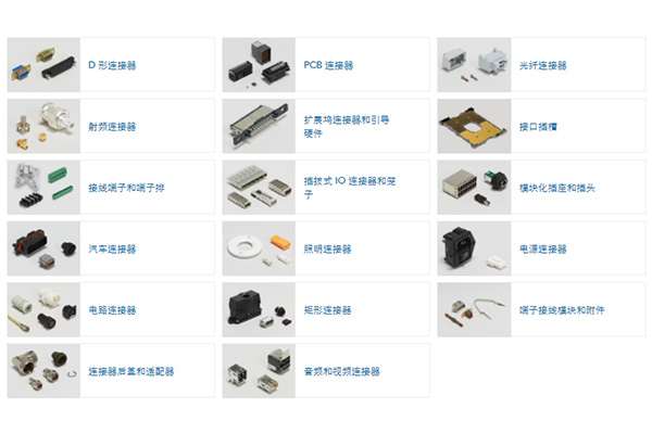 D形连接器,PCB连接器,光纤连接器,射频连接器,扩展坞连接器和引导硬件